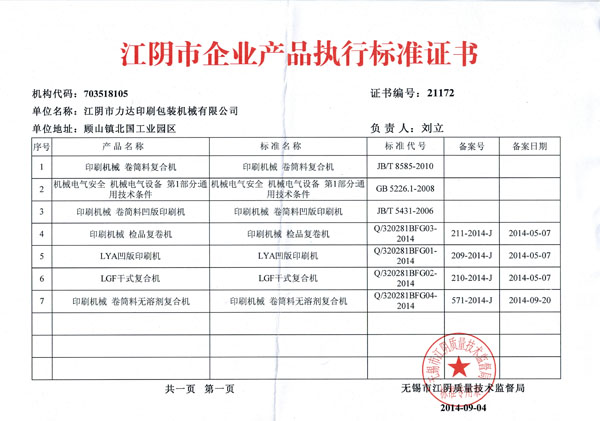 面對日益競爭激烈的市場,企業(yè)導入了先進的管理模式,引進中、高級技術(shù)人才和管理人員,不斷加大技術(shù)創(chuàng)新力度和開發(fā)水平,強化產(chǎn)品質(zhì)量管理,推行并通過了ISO9001~2000質(zhì)量管理體系認證,成立凹版印刷機械專業(yè)研究所,逐步建立健全了從研發(fā)設(shè)計、加工制造到銷售服務全過程完善的質(zhì)量保證體系。公司先后榮獲"質(zhì)量、信譽雙保障示范單位"和"技術(shù)創(chuàng)新十佳單位"。